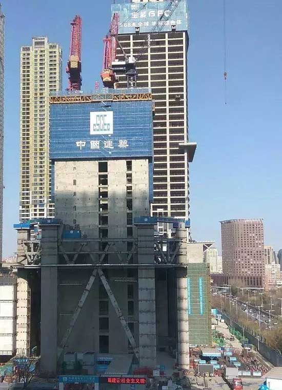 沈阳宝能环球金融中心位于沈阳中轴线和金廊相交会的核心地段,由7栋超高层塔楼组成,总建筑面积约106万平方米。其中,T2塔楼主体结构高度为308米,总建筑面积约15.2万平方米,犹如一座“垂直城市”。该工程采用国内最全的模架体系,通过综合调配,核心筒实现最快4天一个结构层的施工速度。