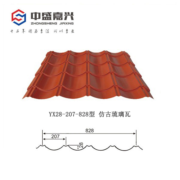 沈阳中盛嘉兴YX28-207-828型彩钢仿古瓦板型图