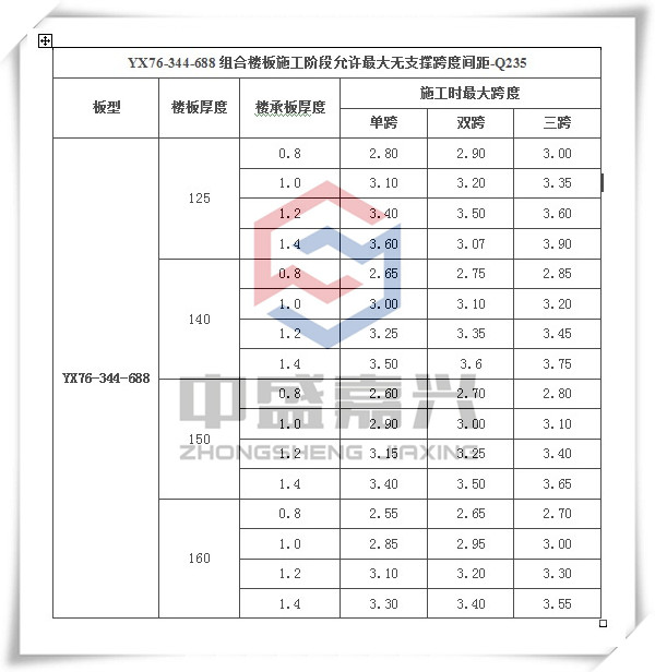 二、 YX76-305-915与YX76-344-688无支撑跨度对比分析