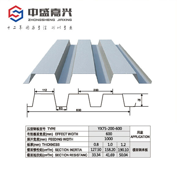 楼承板,也名钢承板、建筑压型钢板,是采用镀锌钢板经辊压冷弯成型。沈阳中盛嘉兴具有十二年楼承板生产加工经验,生产的600楼承板板型合理,强度大,覆盖率高,表面打起凸包增加与混凝土结合力,与混凝土钢筋结构作弯矩抵抗,性能良好,压型板组合楼盖施工简便快捷,不用拆模和多层同时施工,提高施工速度,缩短施工周期,免除天棚粉刷的投资和时间,抗震能力加强、具有优良的耐火性能。600开口型楼承板广泛用于电厂、电力设备公司、汽车展厅、钢结构厂房、水泥库房、机场候机楼、火车站、体育场馆、音乐厅、大剧院、大型超市、物流中心、体育场馆等钢结构建筑。长度由于连续成型生产,楼承板板长可根据工程需要确定,施工方便快捷、工期短、节约钢筋、兼作钢模板。