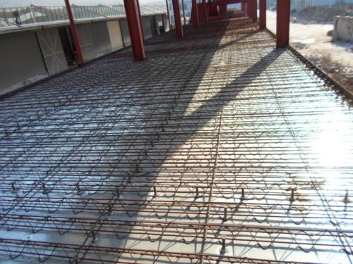 5、现在的混凝土也很贵哦,使用楼承板就可以节省混凝土的用量,楼承板一般是V型、U型、梯形,凸起的部分混凝土要少的多,不像普通模板那样是平板,楼承板一般可节省三分之一的混凝土用量。